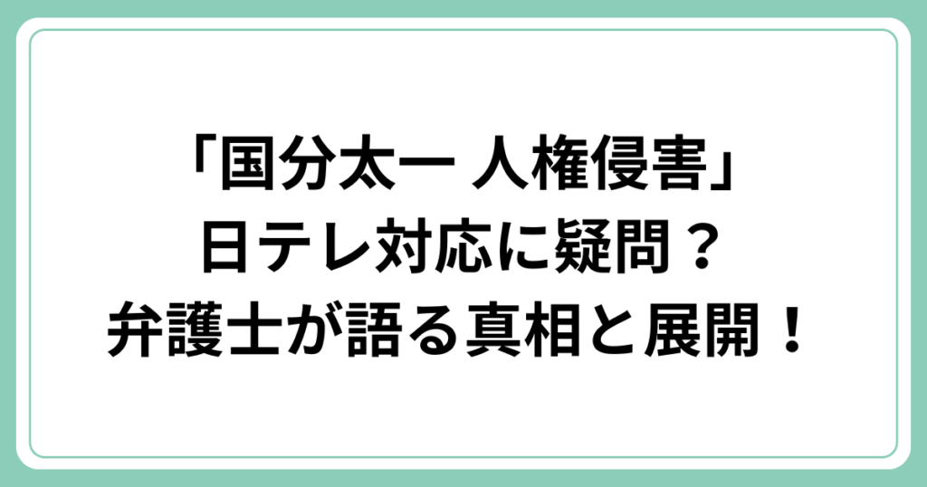 「国分太一 人権侵害」日テレ対応に疑問?弁護士が語る真相と展開!