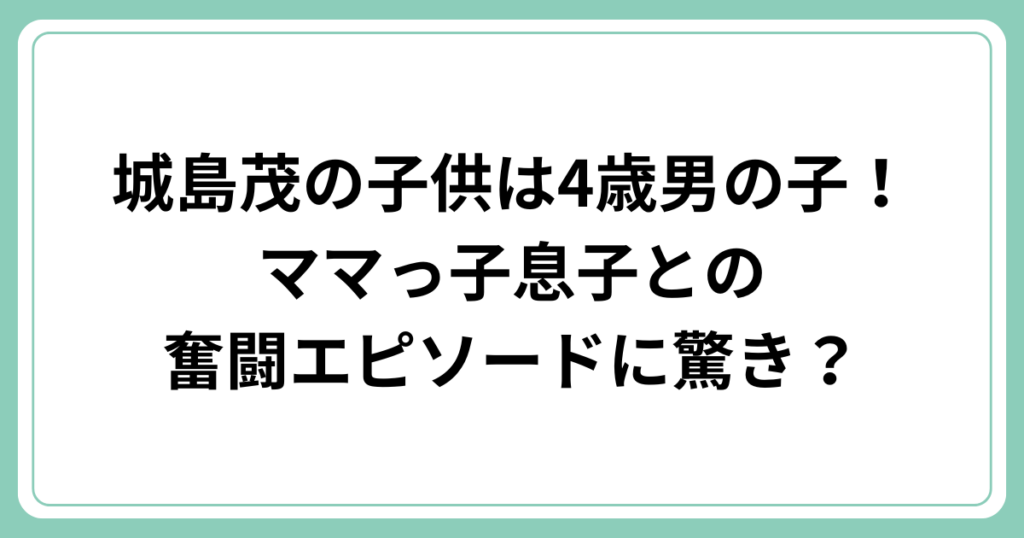 城島茂の子供は4歳男の子!ママっ子息子との奮闘エピソードに驚き?