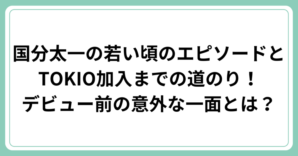 国分太一さんといえば、TOKIOのメンバーとして長年活躍してきたアイドルであり、現在はバラエティ番組の司会者としても人気を集めています。 しかし、デビュー前の国分太一さんにはあまり知られていない一面があったのをご存知でしょうか? 今回は、国分太...
